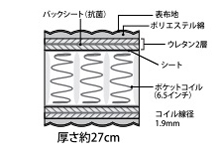 高さ6.5インチ、コイル線径1.9㎜のポケットコイルを使用し、程よい硬さとクッション性は快適な寝心地を実現。シモンズのベストセラーマットレスです。