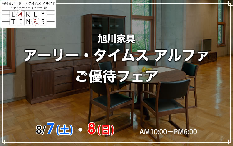 旭川家具 アーリー・タイムス アルファ 【2021年8月7日(土)・8日(日)】ご優待フェア